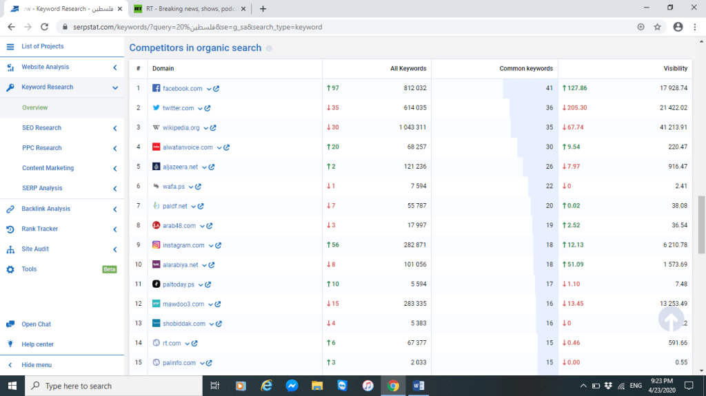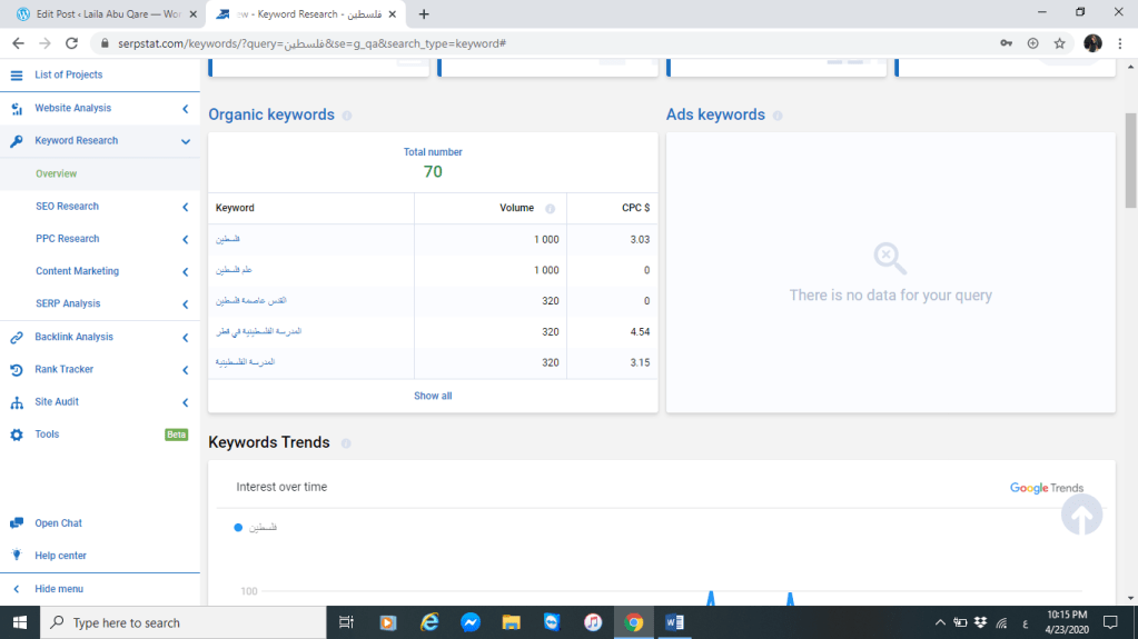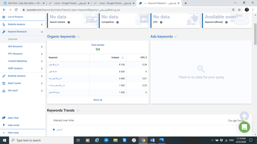 سنقوم في هذا التقرير على التركيز على أكثر ما يهم القطريون والسعوديون عن فلسطين وذلك سوف يتبين من خلال معرفة أكثر المواضيع الذي يتصفحونها عن فلسطين ،بالاضافة إلى ذلك سنعرض لكم أهم المواقع الاعلامية الذي يعتمدونها google trends , serpstat من أجل التصفح والبحث عن فلسطين . مستخدمين في التحليل