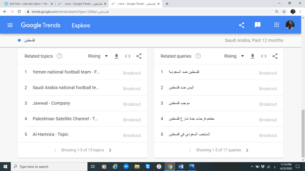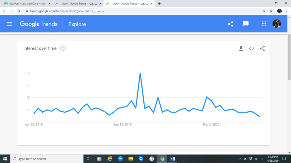 ونشير هنا أن أكثر فترة كان التصفح والبحث عالي”ذروة البحث” عن فلسطين في تلك البلدين فترة تقريبا أواخر شهر يناير 2020 حين وقتها قام الرئيس الأميركي باعلان خطة السلام (صفقة