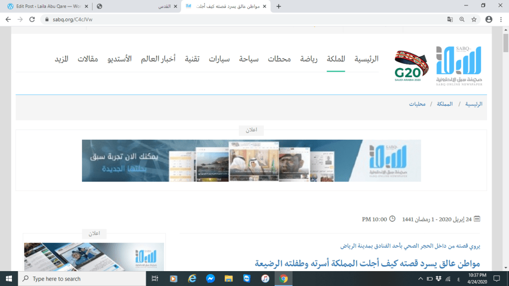 أما بالنسبة لموقع صحيفة سبق السعودية هو أيضا موقع جيد من حيث التصميم ويستخدم كافة الوسائط من صور وفيديوهات وروابط فهو السهل التعامل معه أيضا ومريح فوجدنا أن الموقع يعرض اعلاناته بطريقة أريح وأرتب من موقع صحيفة القدس