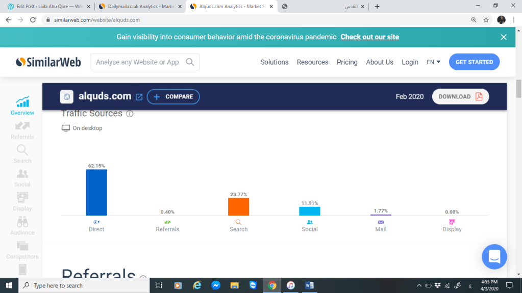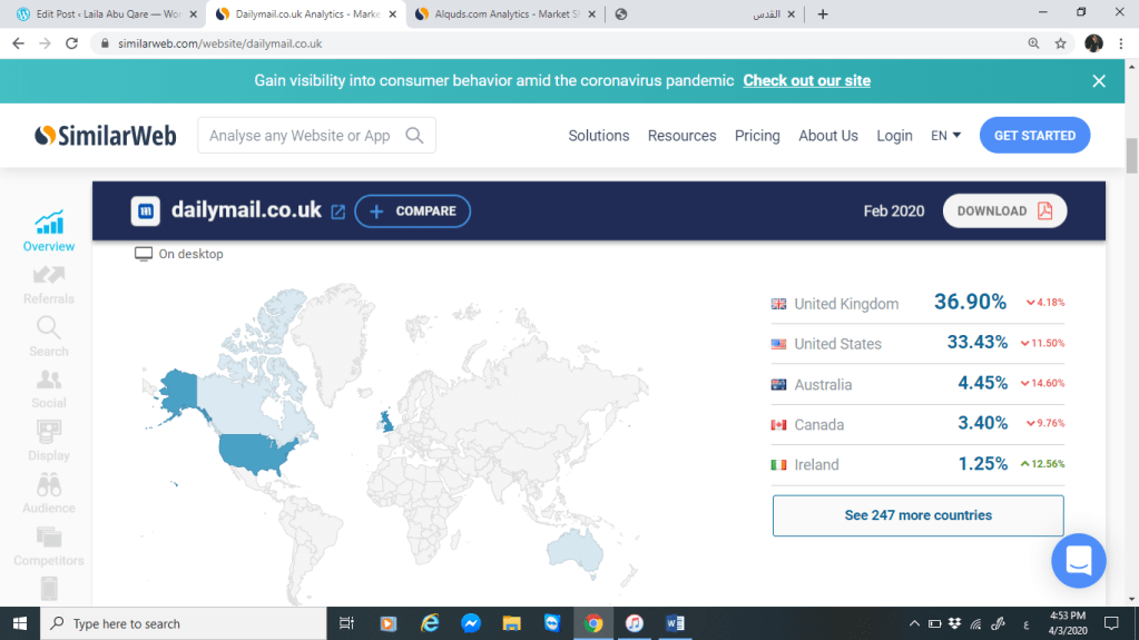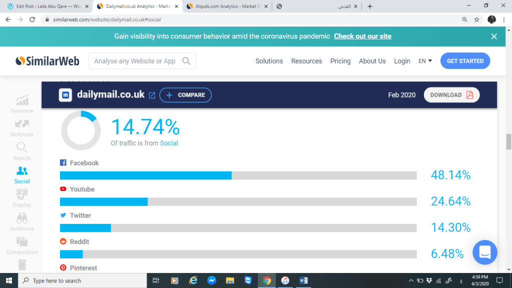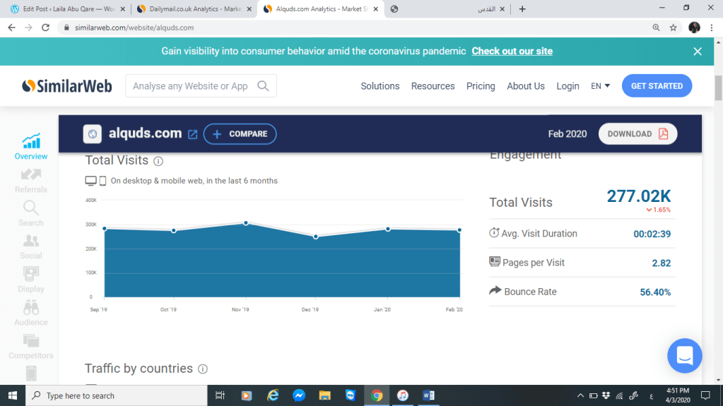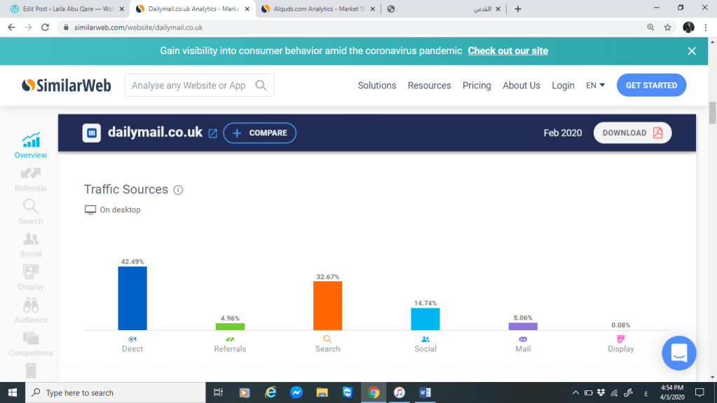 سنقوم بتحليل كل من موقع صحيفة القدس وموقع الديلي ميل البريطانية من خلال المقارنة بينهم عبر موقع SimilarWeb