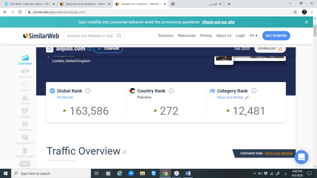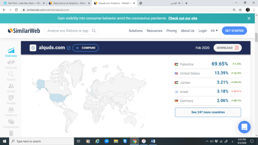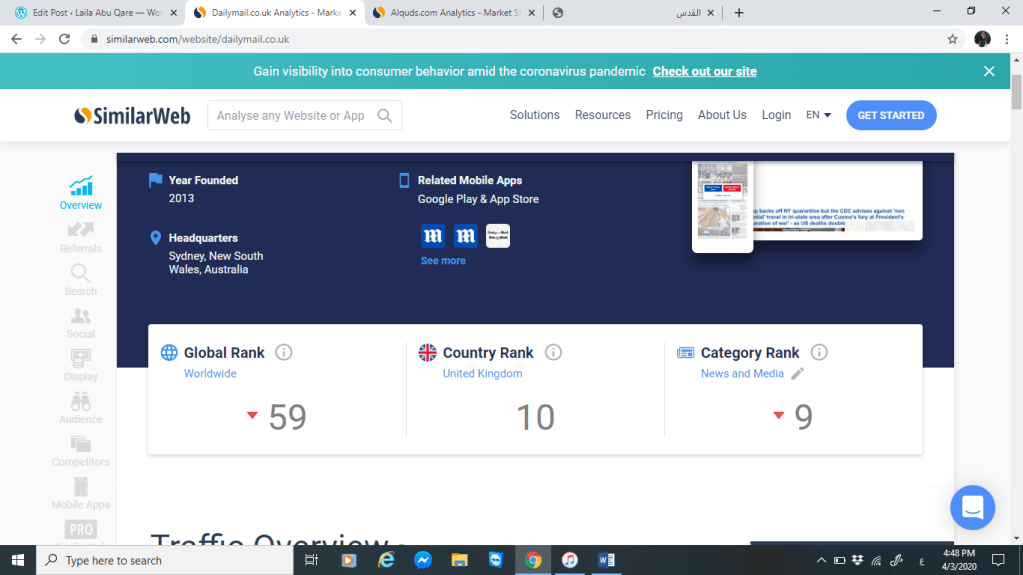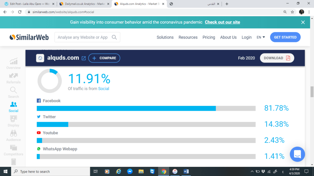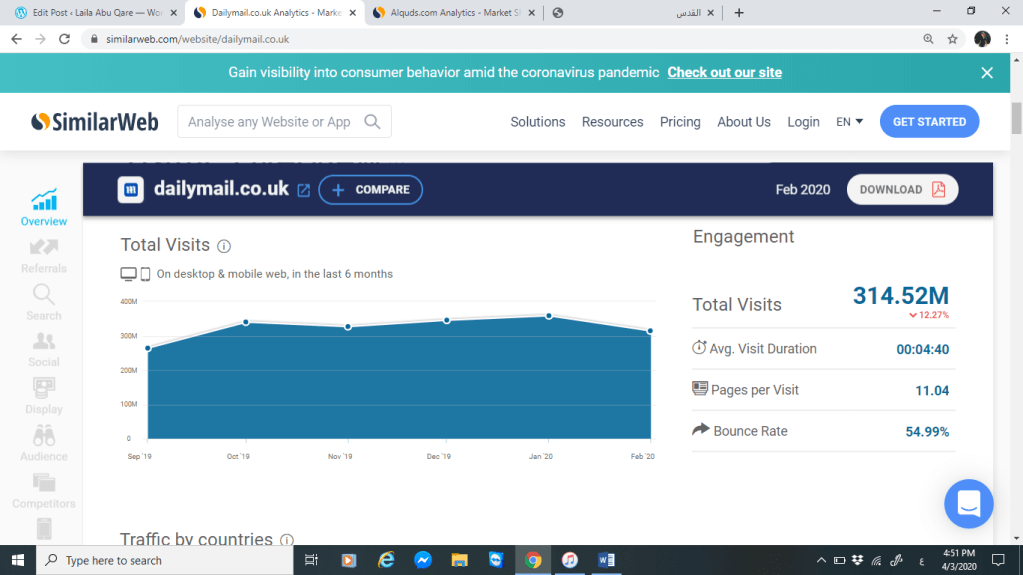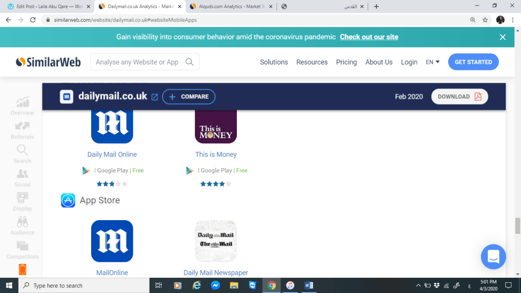 سنقوم بتحليل كل من موقع صحيفة القدس وموقع الديلي ميل البريطانية من خلال المقارنة بينهم عبر موقع SimilarWeb