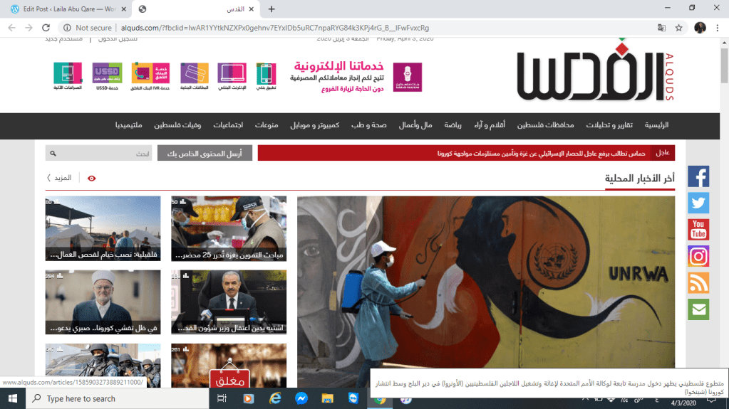 موقع صحيفة القدس ايجابياته ومقترحات لتحسين الموقع